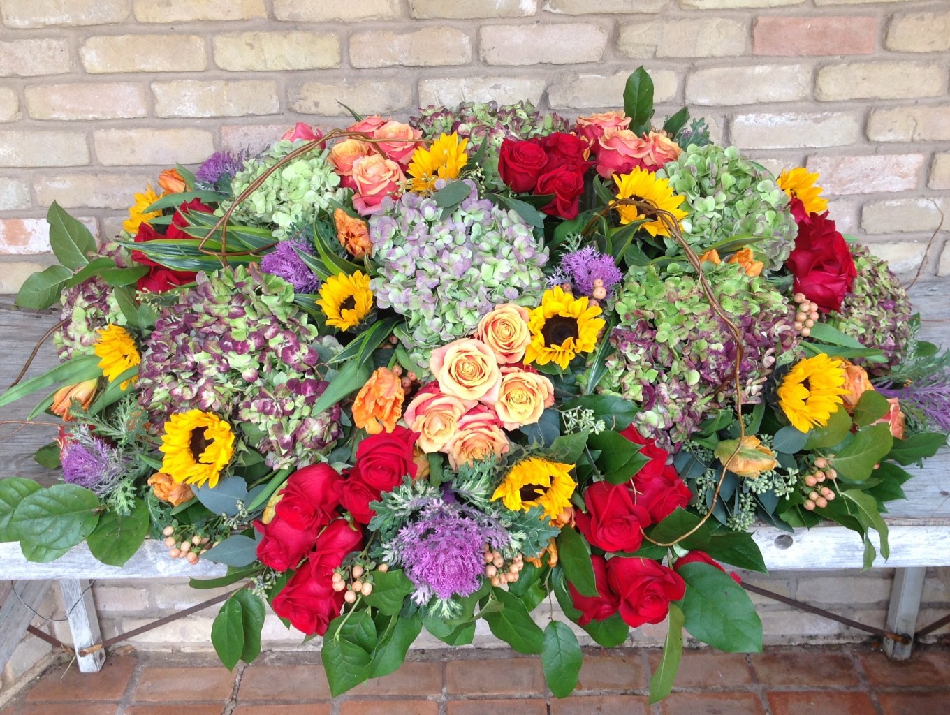 Rich combination of the most vibrant blooms make this casket piece a wonderful way to honor the one you loved.
